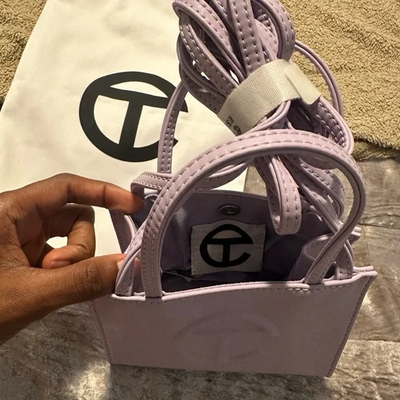 The Telfar Purple Mini Bag is a stylish accessory featuring a structured rectangular shape and a smooth leather-like finish. Its standout features include an embossed...