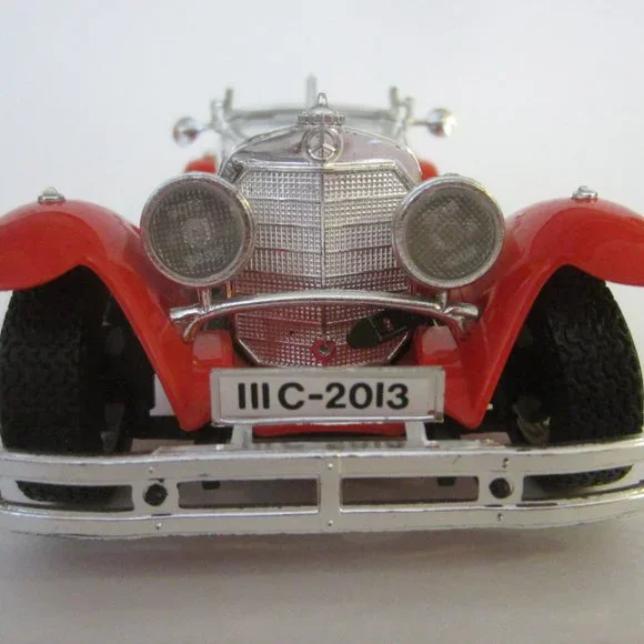 Italian classic Mercedes model car made in Italy by burago, noted verso, bURAGO Made in Italy SCALA 1/24 Mercedes SSK. Attractive red, silver cast iron, acrylic plastic base, movable parts . Unaware of any missing part. Probably from mid century modern era. Plastic & rubber wheels. excellent aged. 7" x 2" x 3". Graduation Classic Toy .