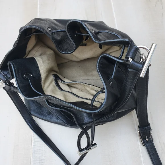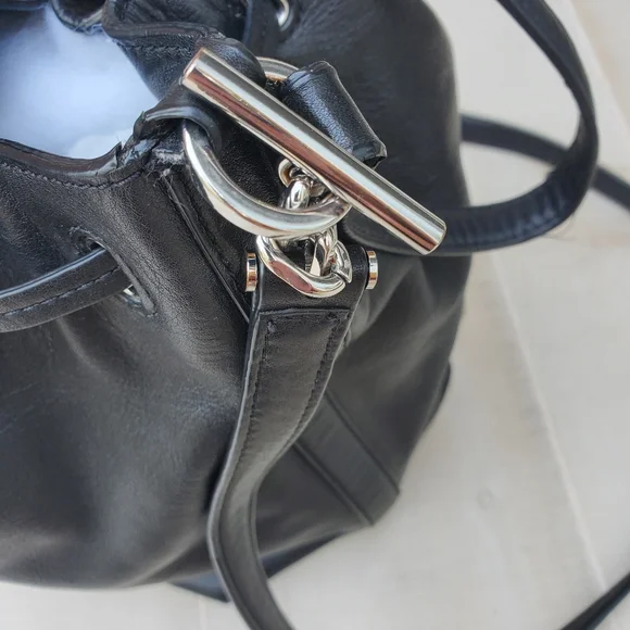 Beautiful supple leather bag with a short handle and removable crossbody strap. Very clean fabric interior has a zip compartment and a snapping compartment. There is some fragrance lingering in the bag.A beautiful bag in excellent condition!I do not send offers but I do run a closet sale occasionally