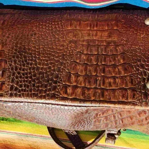 Brahmin Leather Vintage Handbag Made in USAVery litte wear but does have a little discoloring on the corners as in photo. Inside nice and clean no other stains etc.It has the best of both worlds a handbag and a crossbody. Its a great size 12x8x6. If you would like more photos please ask
