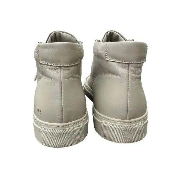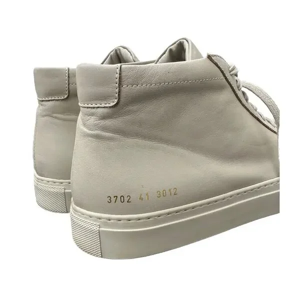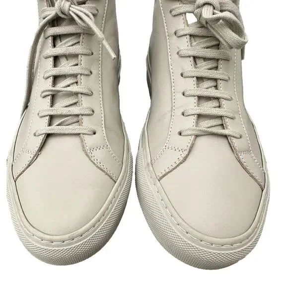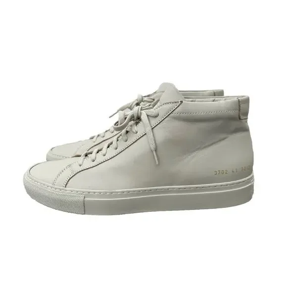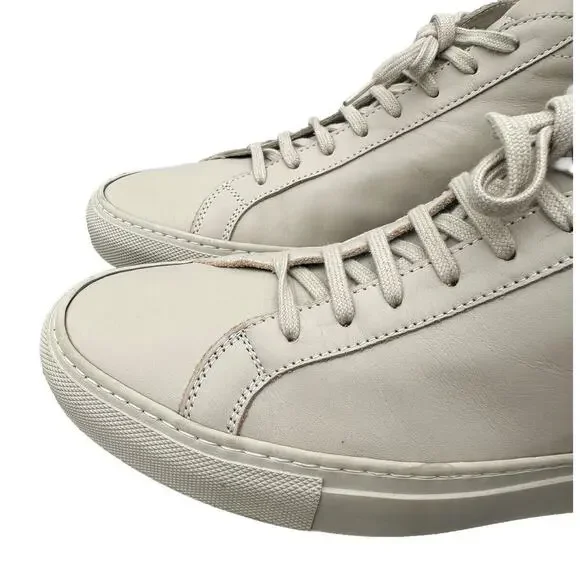 Common Projects Original Achilles High Men’s EUR Size 41.Pre owned condition.No box no bag.Very good condition.Gently worn.Tiny spot on the side.Expect light stains around the shoes.Beige.