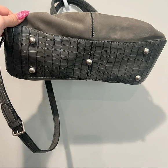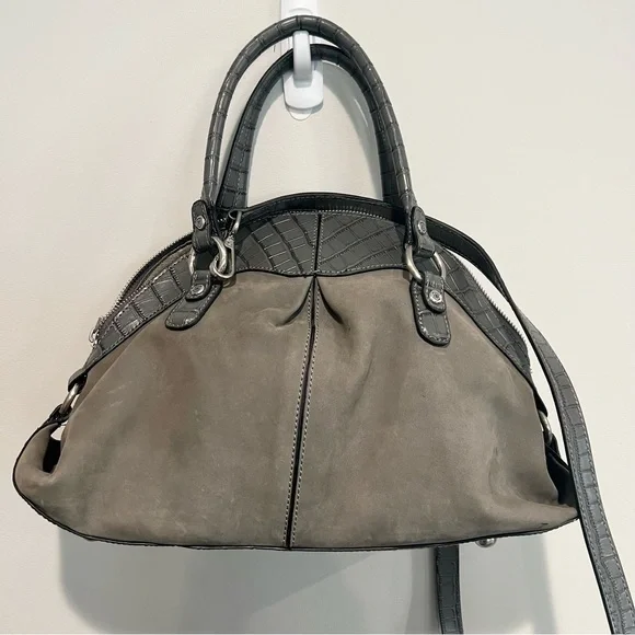 J.W. Hulme Purse Gray Leather Croc Print and Nubuck Satchel Shoulder Bag