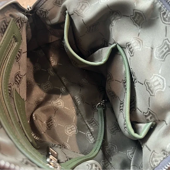 J.W Hulme gray croc embossed leather and gray nubuck top handle satchel purse with adjustable shoulder strap and inside pockets. Very gently used. Two small marks on exterior, see photo. Smoke free home. See all photos as they are part of the description. Approx measurements:14 1/2” x 10” with a 19” adjustable shoulder strap
