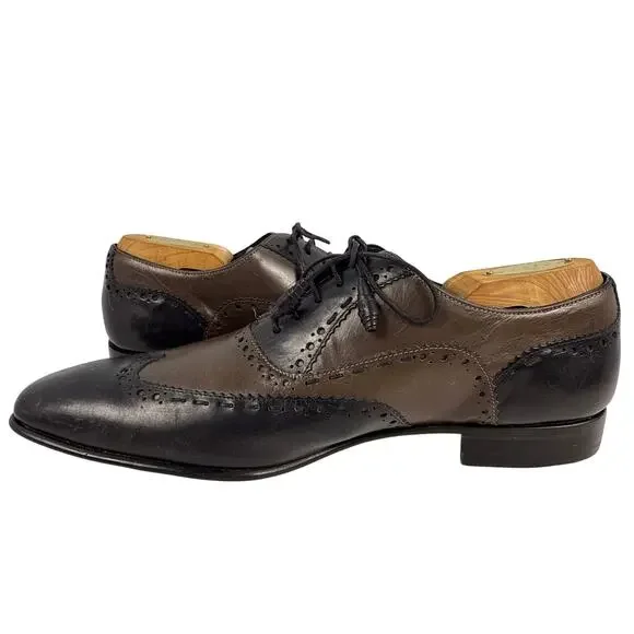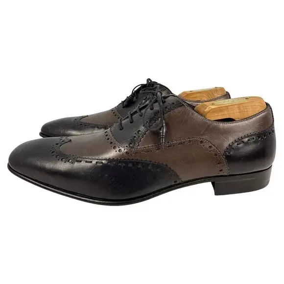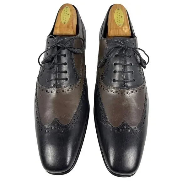 Mezlan Wing Tip Oxford Dress Shoes Mens Size 8M 15374 Black Brown Leather Brogue