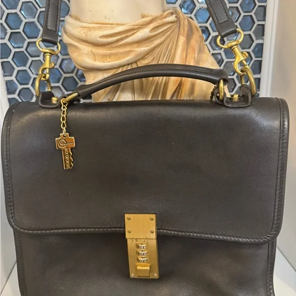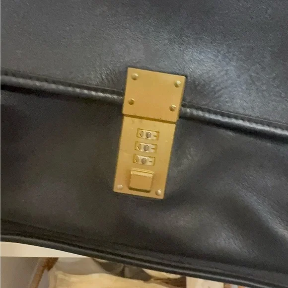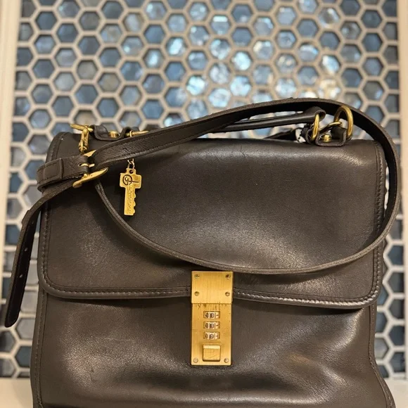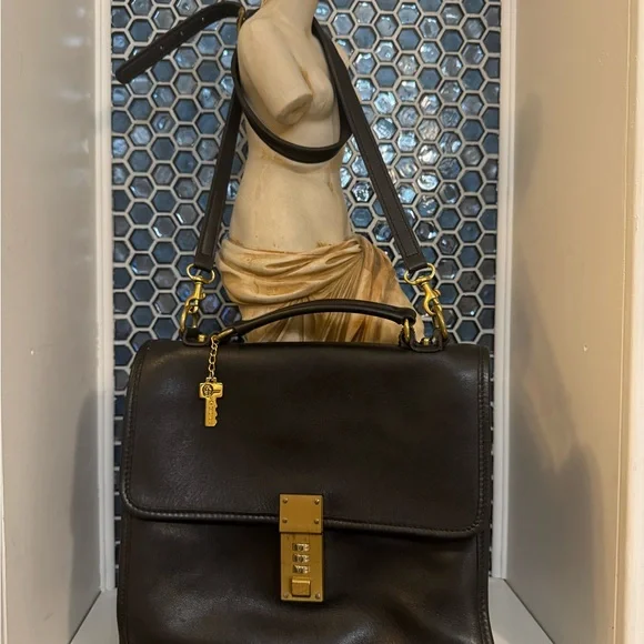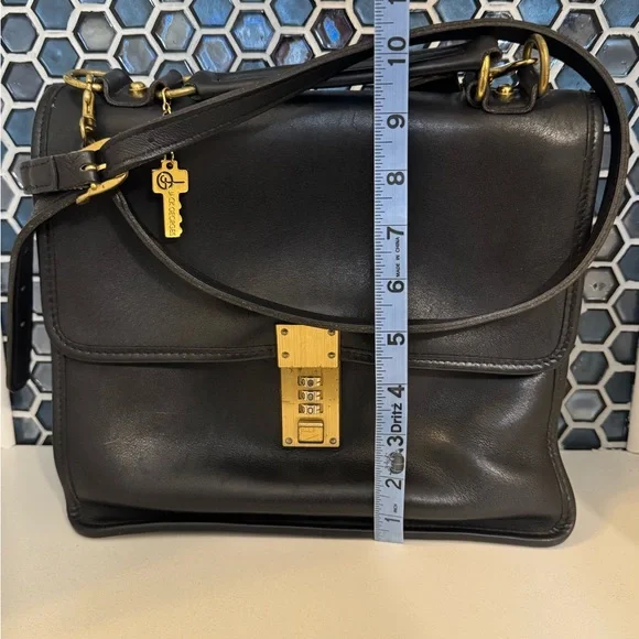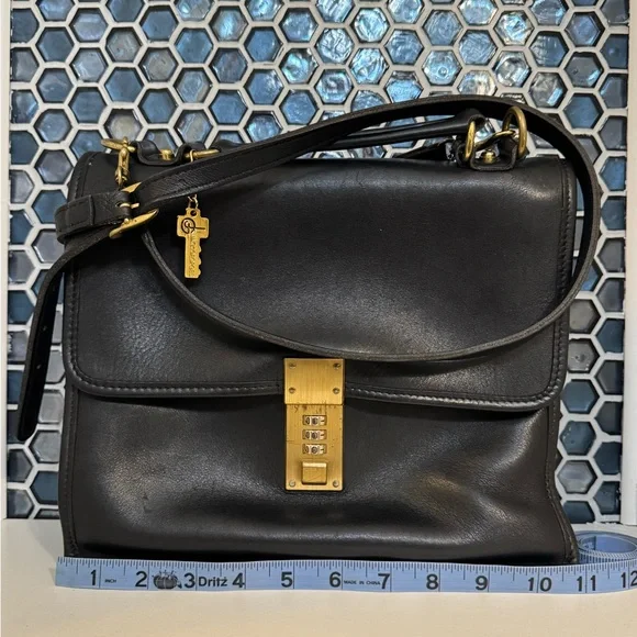 Rare!! Vintage Jack Georges Black Leather Crossbody Purse Combo Lock Latch