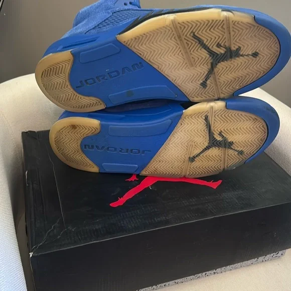 Retro Nike Air Jordan 5 Blue Suede Basketball Sneakers
