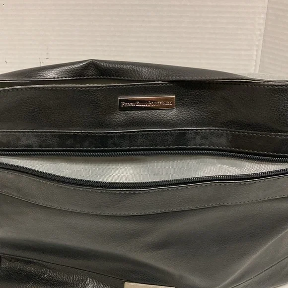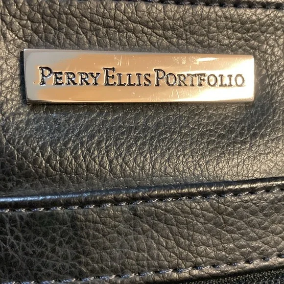 PERRY ELLIS Portfolio Black Leather Briefcase Messenger Bag ,Lap Top BagUNISEX SIZE OSColor Black Bag has adjustable strap,has four cards holders,three ink pens holders,one large...