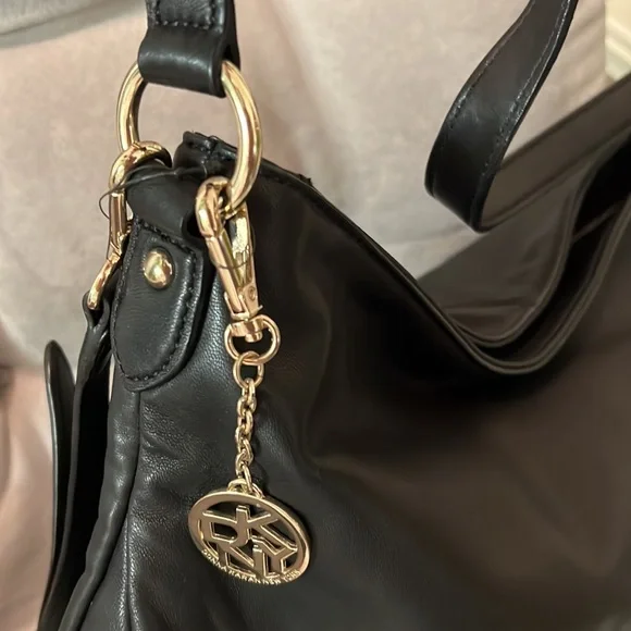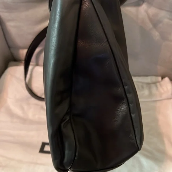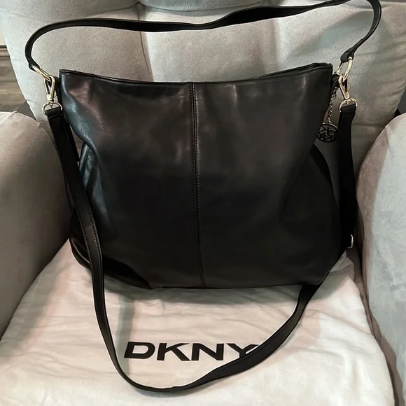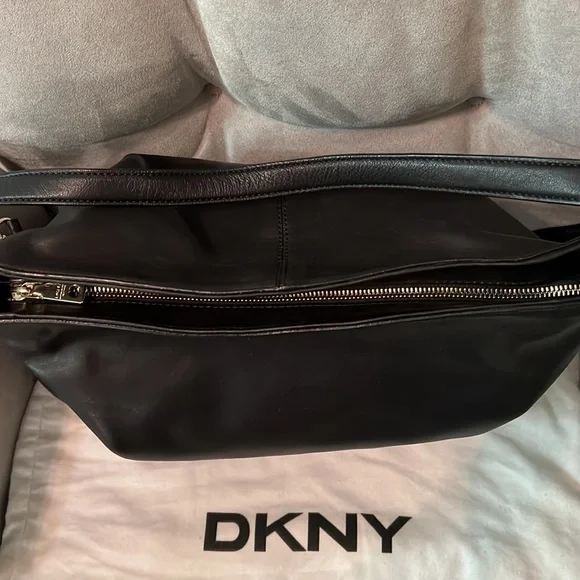 Buttery soft leather that feels so good. Bag has 2 handles. One shoulder and one for carrying by hand. Glossy hardware and DKNY Bag Tag clipped on. Comes with dust bag. One...
