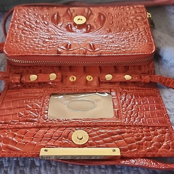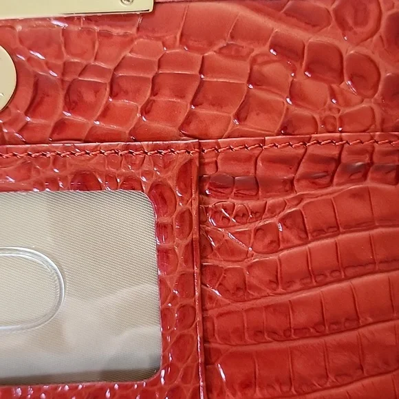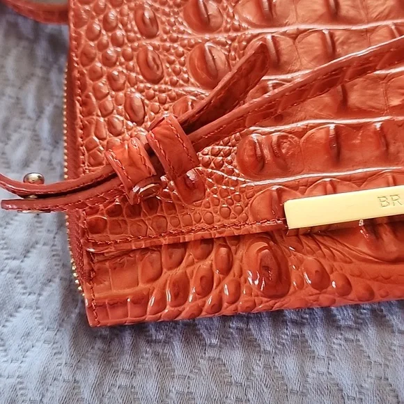 Experience the perfect blend of style and practicality with the Brahmin Crossbody Bag. Crafted with a luxurious crocodile texture, this bag stands out with its vibrant red hue. Designed for versatility, it features a sleek silhouette and a convenient crossbody strap, making it an ideal choice for any occasion.It is a red color. Lighting messed with it.