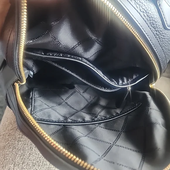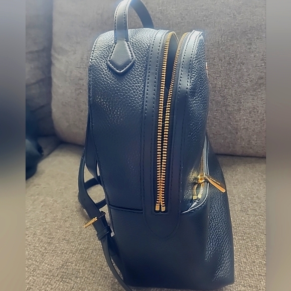 This Michael Kors backpack in classic black combines elegance with practicality. Crafted from a smooth material, it features gold hardware that adds a touch of luxury. Ideal for everyday use, its minimalist design ensures it complements any outfit effortlessly.