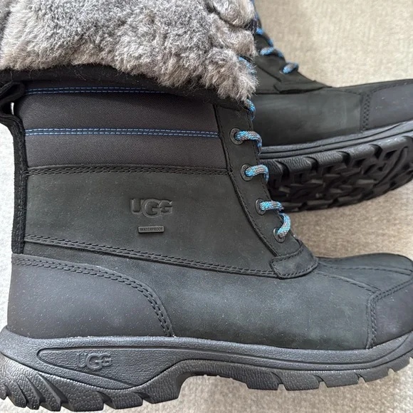 NIB✨ UGG® Men’s Butte Waterproof Hiking Boot Black, size 10MBrand new in original box.100% authentic.The Butte Quilted is built to bring you functional warmth in chilly conditions. As capable as the original Butte, this iteration features a premium quilted nubuck upper for a lightly padded appearance. We´ve included the same cuffable shaft and luxe UGGplush lining for immersive comfort. And, thanks to the fully waterproof construction, durable Vibram® outsole, and -20ºC weather rating, you´ll never have to think twice about heading outside.❄️Waterproof❄️Waterproof membrane bootie construction❄️Gusseted tongue with water repellent coating❄️Waterproof nubuck❄️Cuffable shaft❄️8mm fluffy poly knit fabric lining on vamp, 8mm fluffy poly knit fabric lining on quarter, 17mm UGGplush™ 60% upcycled wool, 40% lyocell shaft lining, 17mm UGGplush™ 60% upcycled wool, 40% lyocell tongue lining❄️7mm curly UGGplush™ 60% upcycled wool, 40% ❄️TENCEL™ Lyocell❄️EVA footbed❄️EVA midsole❄️Vibram® outsole❄️8.5" shaft height❄️Cold-weather rated to -20˚C❄️Heat-embossed UGG® logo, Woven label with UGG® logo❄️Best for: Casual, Light or moderate rain, Light snow, Heavy rain, Heavy snow