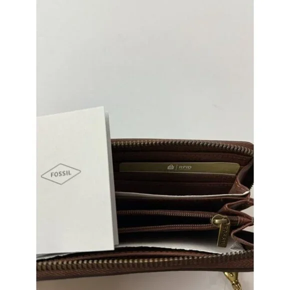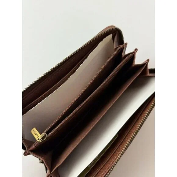Boston University Fossil Women´s Leather Logan RFID Zip Around Clutch - Brown