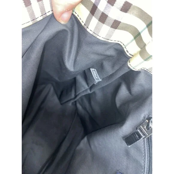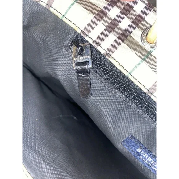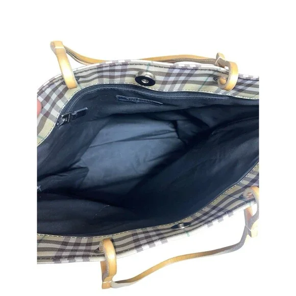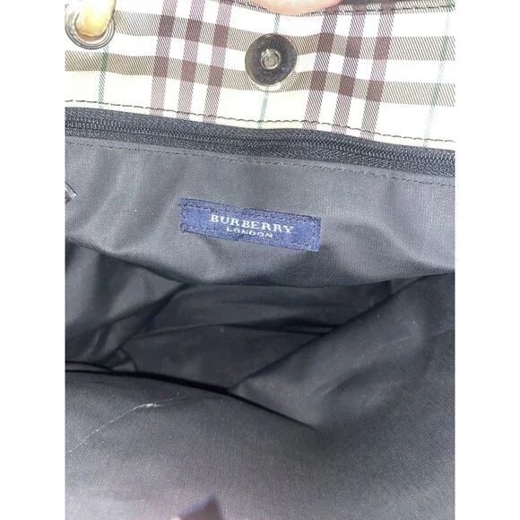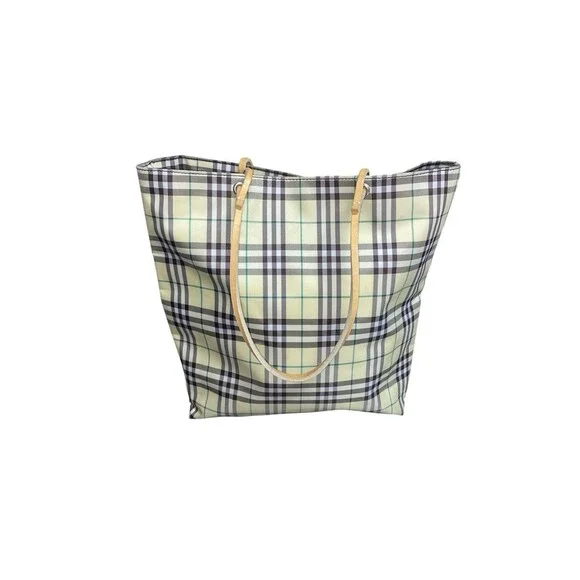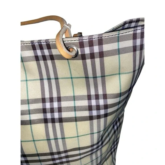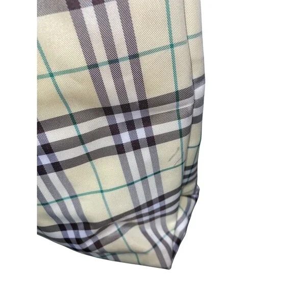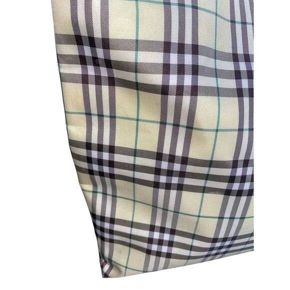 Vintage Burberry London Tote Bag Nylon Leather Cream Yellow Brown Plaid