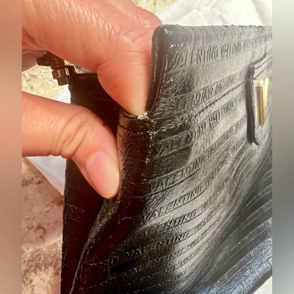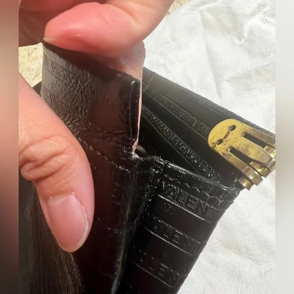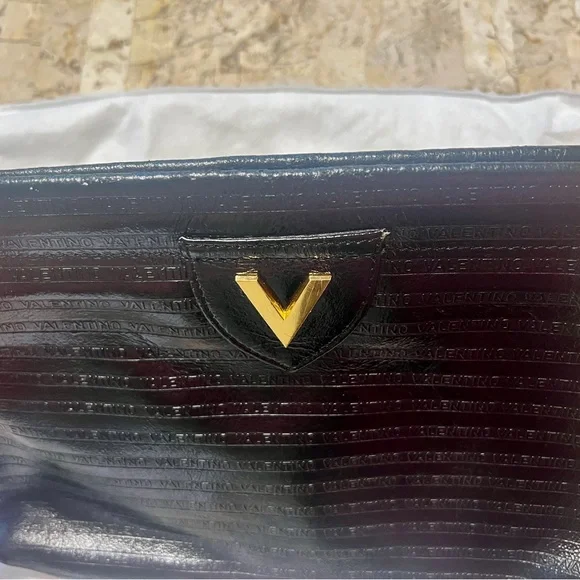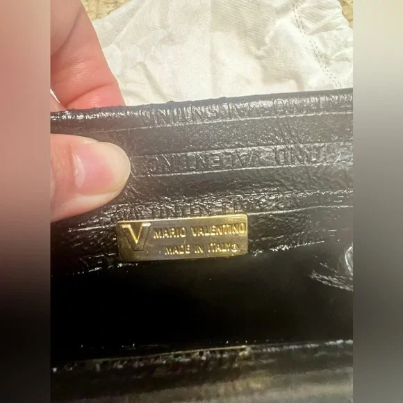 Mario Valentino vintage clutchVintage pieceMade in ItalyClutch lock does not work, I think it is missing the metal piece on the other side, only one side has the metal thing on the top area. Still beautiful and you can upcycle it into a shoulder bag or just use it as is as a clutch bag as is. V hardware with some scratchesSome scuffs on the top area and cornersInside intact No inclusionsSold as is