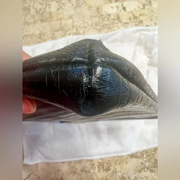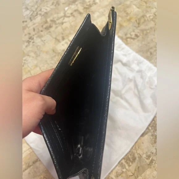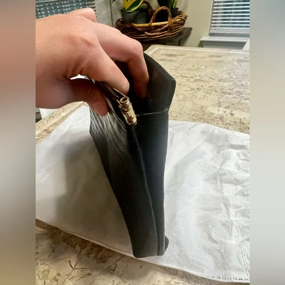 Mario Valentino vintage clutchVintage pieceMade in ItalyClutch lock does not work, I think it is missing the metal piece on the other side, only one side has the metal thing on...