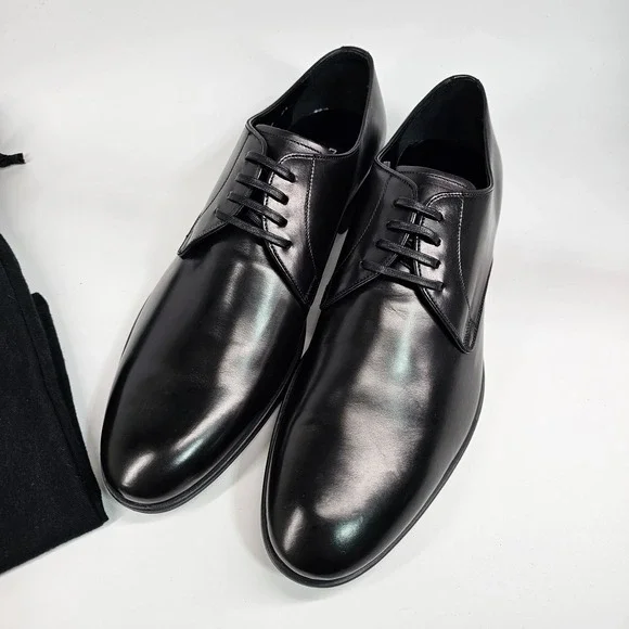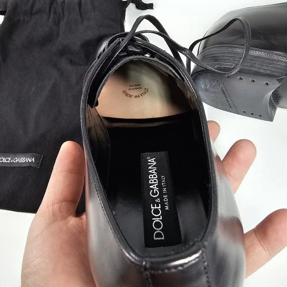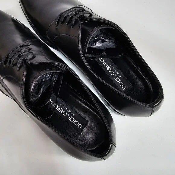 Dolce & Gabbana Dress Shoes Mens Size 7.5 Derby Plain Toe Black Made In Italy
