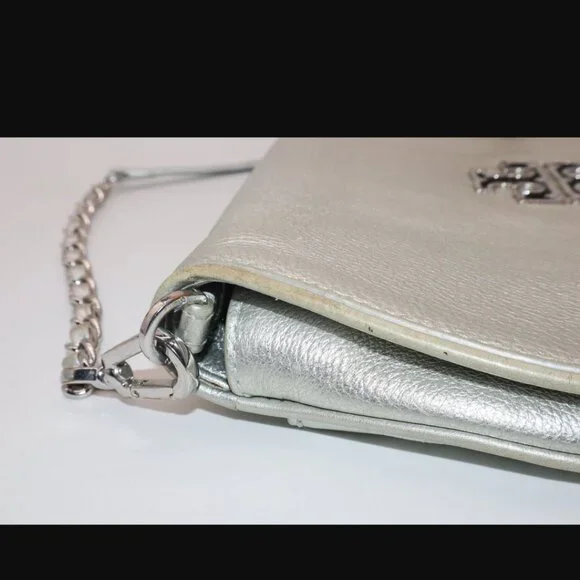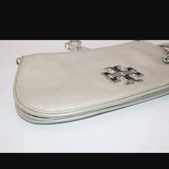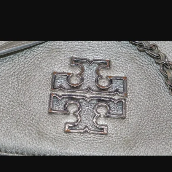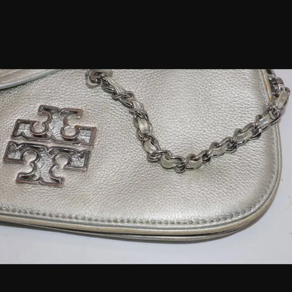 Tory Burch Silver Metallic Chain Crossbody Purse Handbag