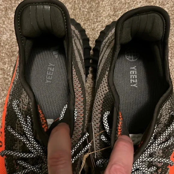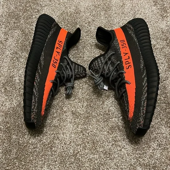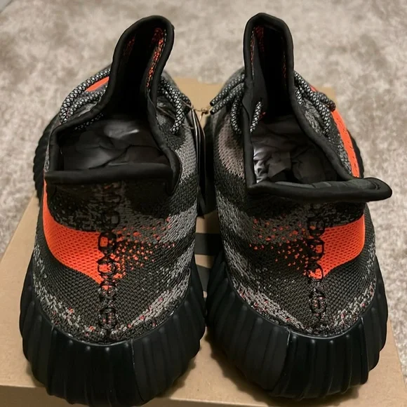 Step up your style with the Adidas Yeezy Boost 350 V2 in striking black and orange. These shoes offer unparalleled comfort and a bold look. Perfect for any occasion.