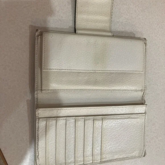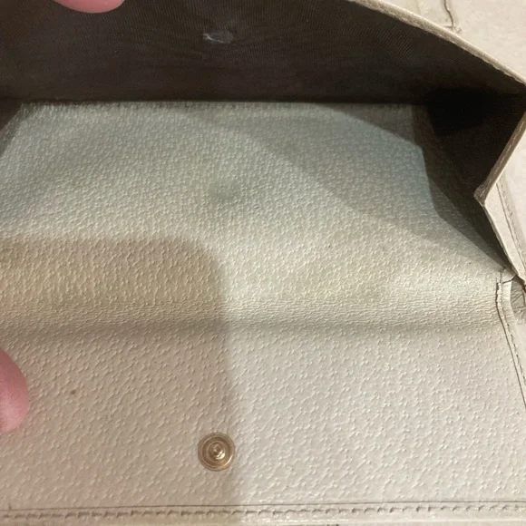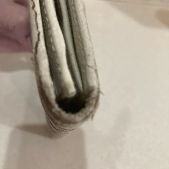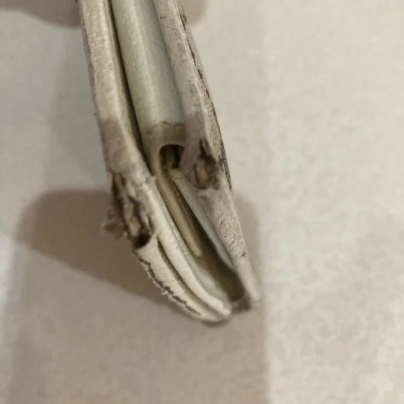 This is a vintage wallet with some obvious callouts, but it has great bones attractive snap works. There’s some frame in a couple of the corners as shown and some peeling on one...