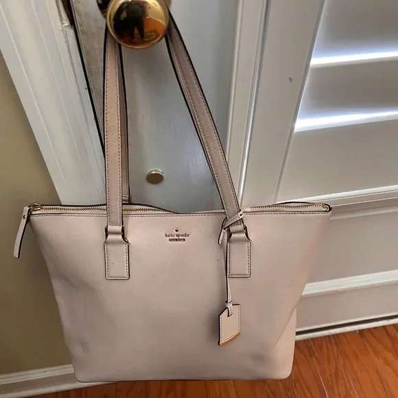 Kate Spade Cream toteApprox 10 1/2 X 15Tote with zip closure2 open interior pockets1 zip interior pocket