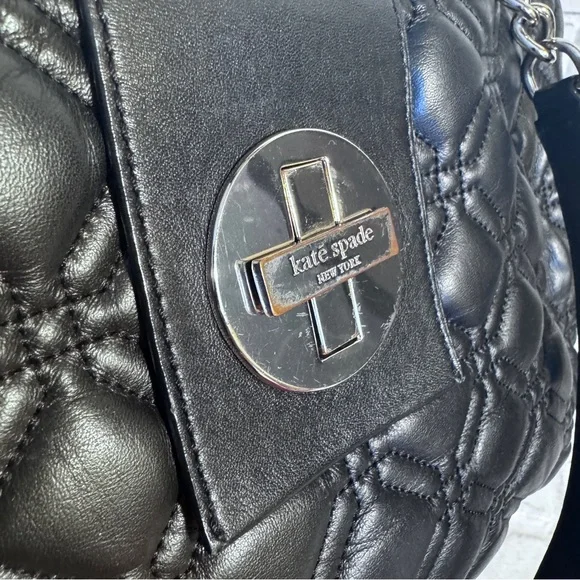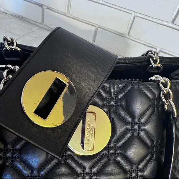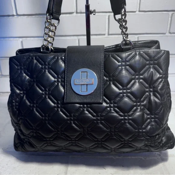 Kate Spade Astor Court Elena Black Quilted Leather Shoulder Bag Twist Lock Purse