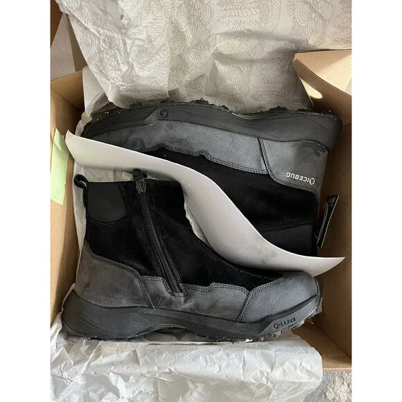 New ICEBUG Metro2 BUGrip Snow Boots Black Men Sz 9 Warm Traction Studs Comfort
