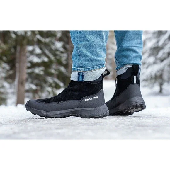 New ICEBUG Metro2 BUGrip Snow Boots Black Men Sz 8.5 Warm Traction Studs Comfort