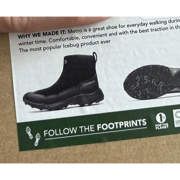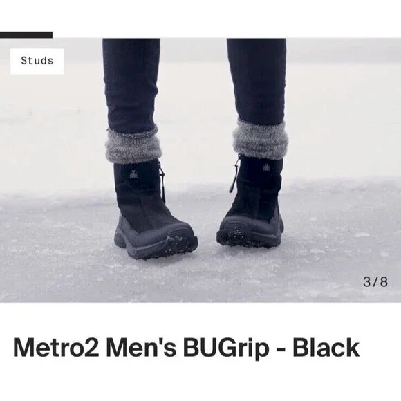 New ICEBUG Metro2 BUGrip Snow Boots Black Men Sz 10 Warm Traction Studs Comfort