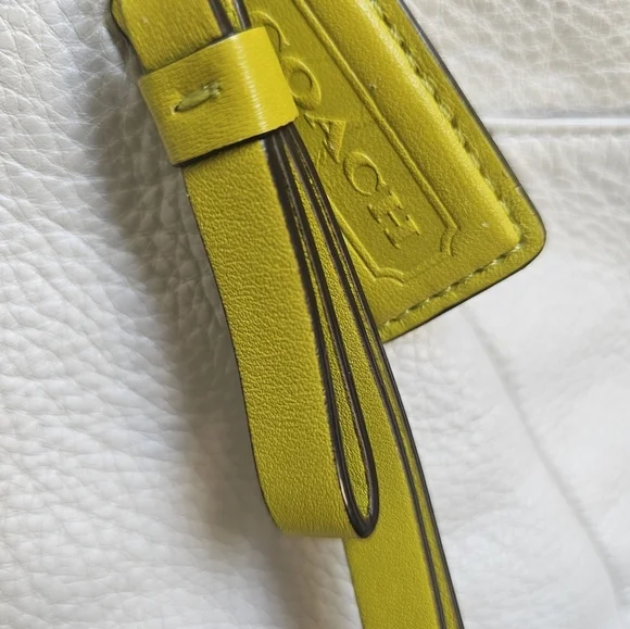 COACH PARK LEATHER CARRIE TOTE Style: F23284 Color: SV/PARCHMENT MSRP $358 Leather Inside zip, cell phone and multifunction pockets Zip-top closure, fabric lining Outside open...