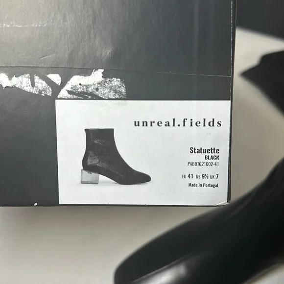 Unreal Fields Statuette - Black Leather Acrylic Heel BootsBrand new with tags and box.Size EU 41 / 9.5 USDESCRIPTIONA square toe boot with a cube shaped heel, resembling the base...