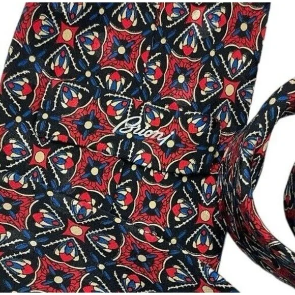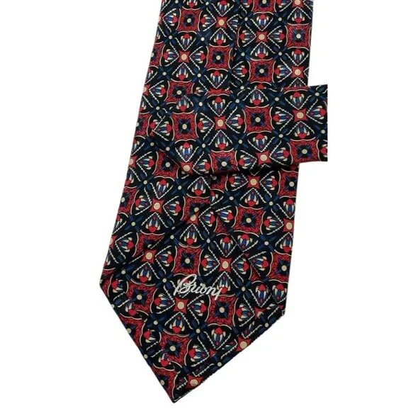 Brand : BRIONICountry Of Manufacture : ItalyType & Style : Men´s Handmade TieColor & Pattern : Black Red GeometricMaterial : SilkSize : RegularMeasurements : L 60" W 3.8" Condition : ExcellentWelcome to S.I.R. LUXURY StoreAll our items are geniune and authentic.The color may vary slightly due to computer or phone screens.We will do our best to ship your item fast and carefully.If for any reason you are not satisfied with the item received, please write us before leaving bad feedback and we will resolve it immediately.Just give us a fair chance and we promise we can make you Happy, your satisfaction is our priority.You can also visit our store and take a look at our collection of items for men and women posted daily.Please do it and save us.Thank you.