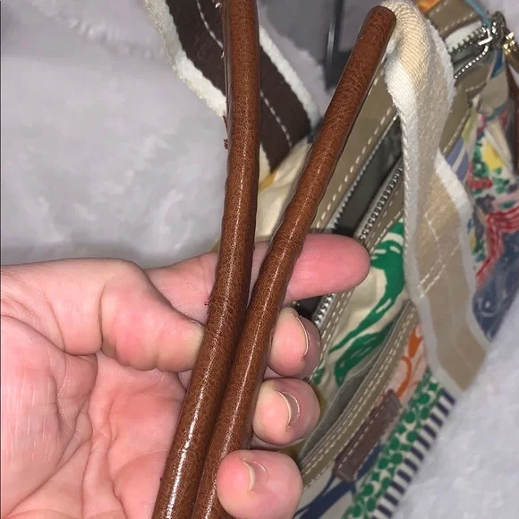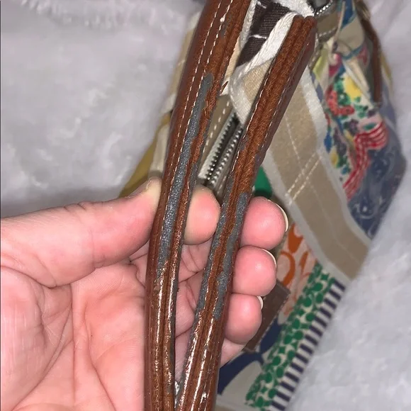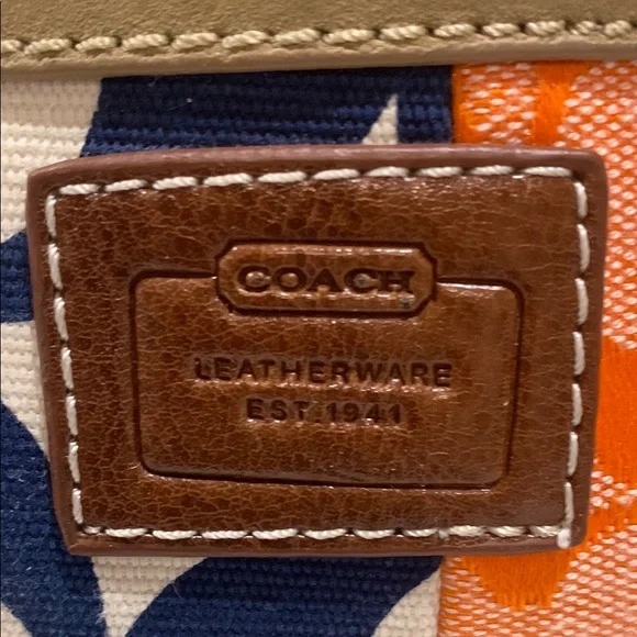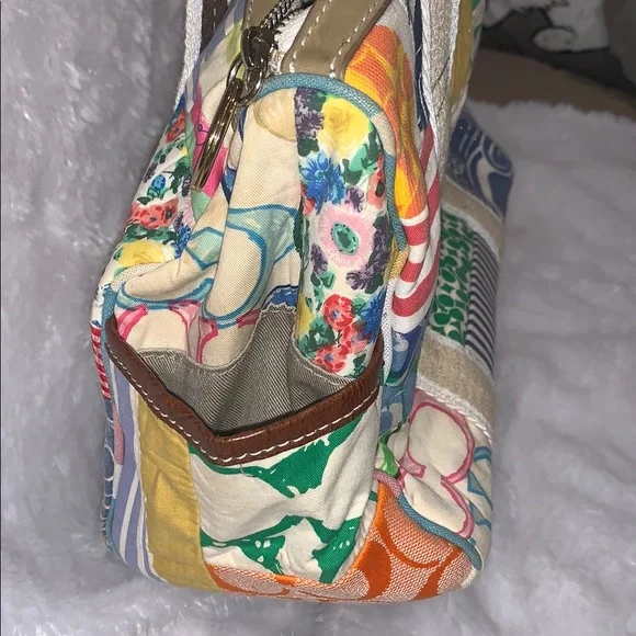 Coach Patchwork Madras Canvas Tote Bag Leather Accents