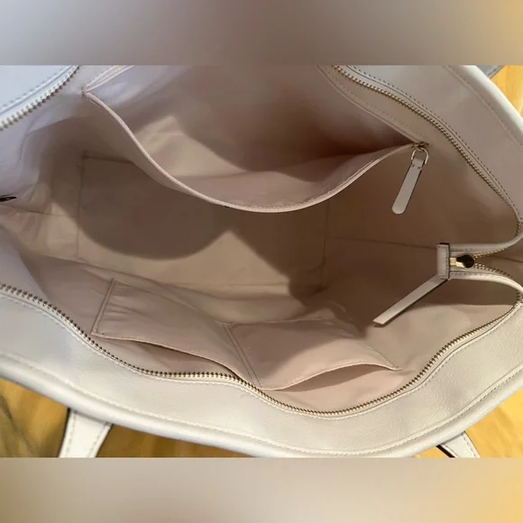 The tote is in excellent used condition.The tote is approximately 13” x 18”, approximately 6” deep and has an 11” drop.The interior has a zipped pocket and two open pockets.