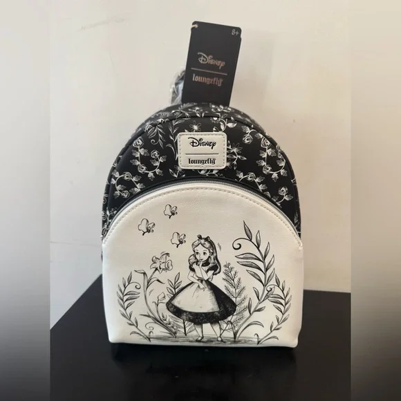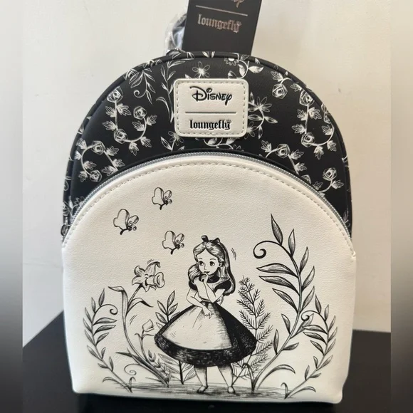 Loungefly Disney Alice In Wonderland Floral Mini BackpackProduct Details:- Dimensions: 9 1/2" x 4 1/2" x 10 1/2"- Made from durable polyurethane- Features a convenient front zipper pocket- Includes an interior drop pocket for added organization- Loungefly- Brand new condition ***Check out all the pictures; you’ll receive the exact item shown. Please note the last picture, which highlights a small mark on the back of the backpack.***
