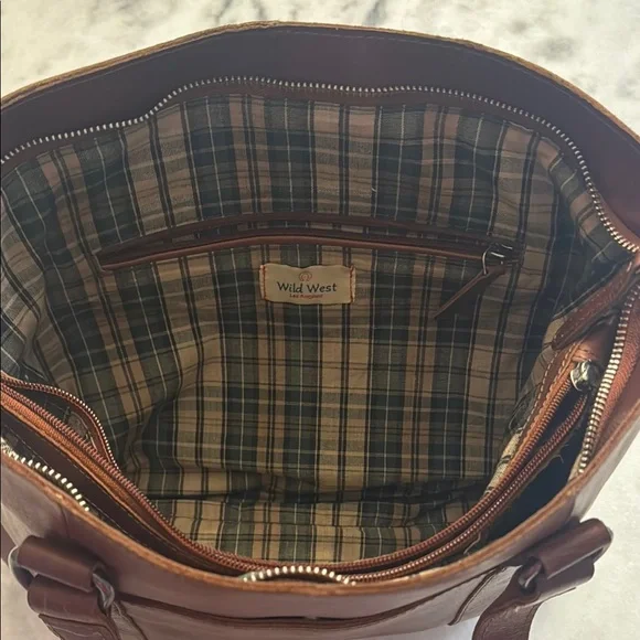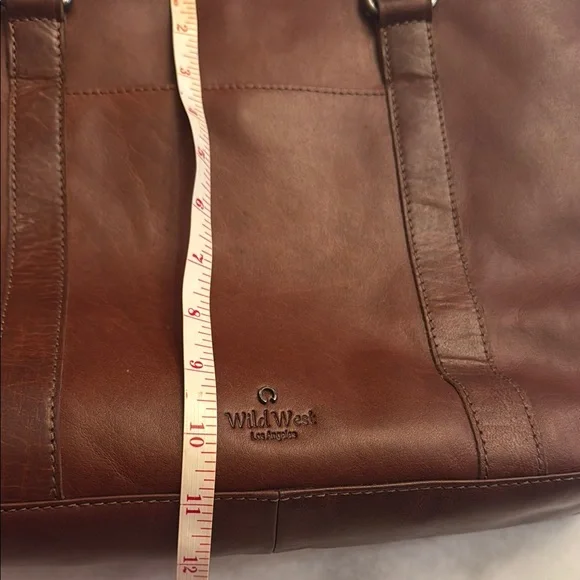 Wild West Los Angeles Brown Leather shoulder BagStylish and durable brown leather tote bag perfect for everyday use. Features a spacious interior and sturdy handles for comfortable carrying.
