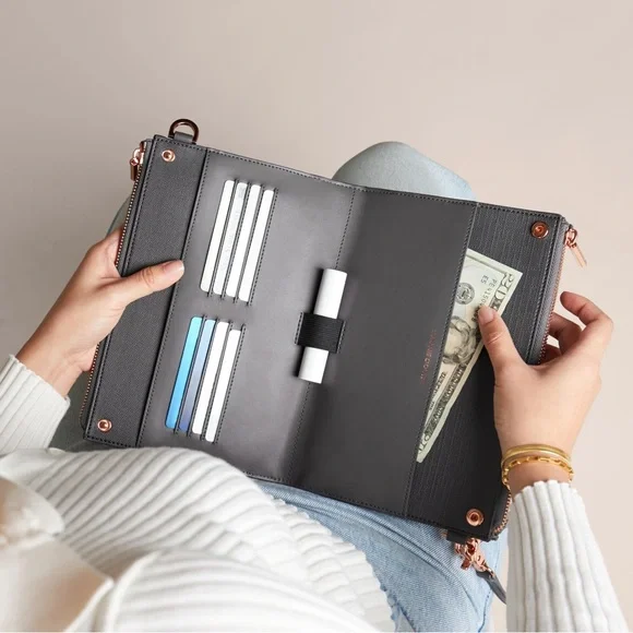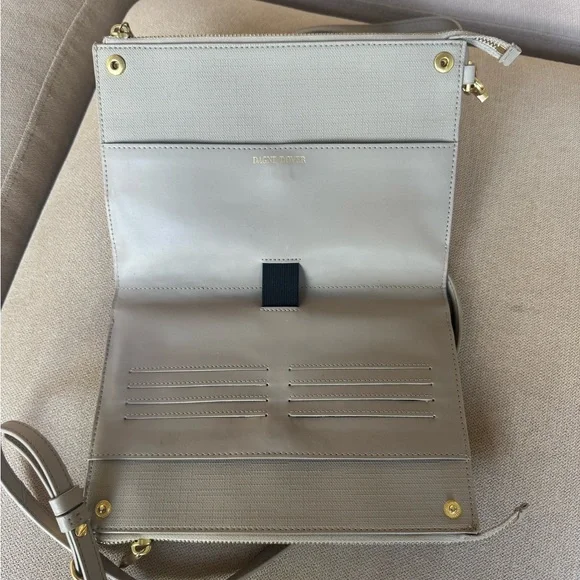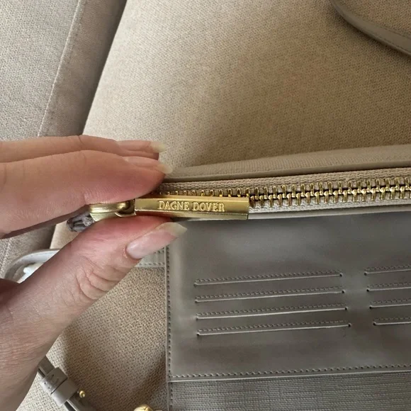 Dagne Dover clutch with removable cross body strap. Comes with storage bag