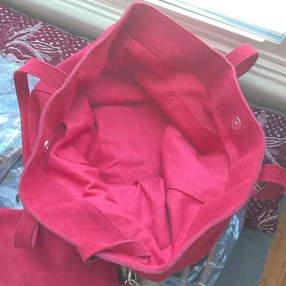 M.I.L.A.´s best selling Suede Tote Bag is the epitome of luxury bags for women and the #1 under luxury handbags online. Crafted from buttery soft Suede leather, this roomy tote will be your favorite wardrobe staple. One of the most iconic mila bags this style comes in a variety of colors.Color matching cotton lining makes your bag look good inside out, 3 pockets will keep your essentials organized, a top closure keeps your belongings safe. Combine this bag to every outfit, this MILA Luxe Bag is stylish and functional at the same time. Perfect for work, leisure and travel!Amazing gift idea and with expedited shipping just in time for Mother’s Day!Made out of 100 % Genuine Leather and color matching cotton lining.Width: 18" / Height: 12" / Depth: 6"