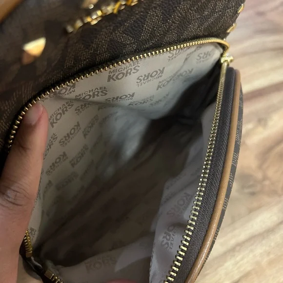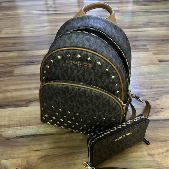 Michael Kors Brown Monogram studded backpack