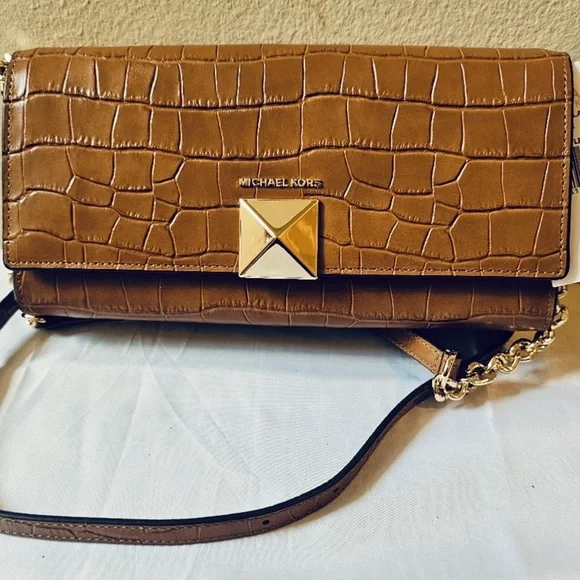 NWT ❤️ This has never even been used card and tags still attached, beautiful leather material, with adjustable shoulder strap and gold chain links in bottom of strap. Lots of space inside, SMOKE FREE HOME GUARANTEED, please feel free to ask any questions.