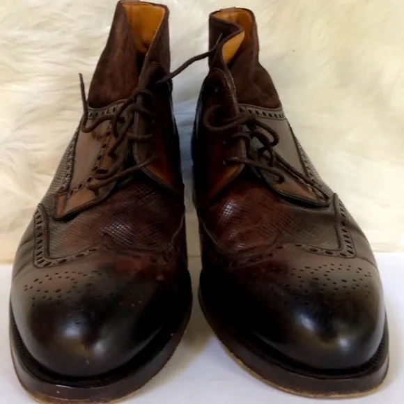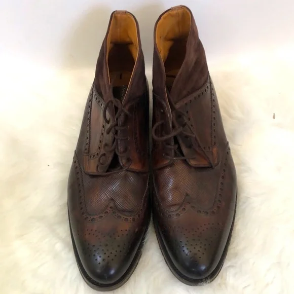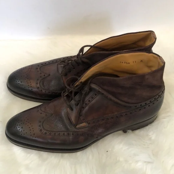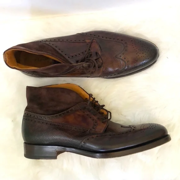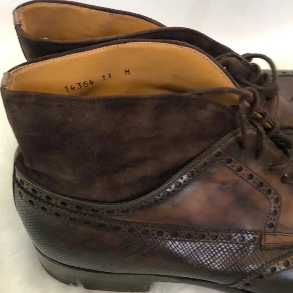 Description: Magnanni Mens Colas Brown Wingtip Leather Lace Up Round Toe Chukka Boots Size 11Brand : Magnanni Material: Leather Condition:Good Condition