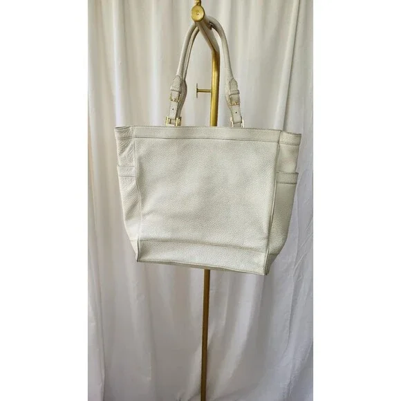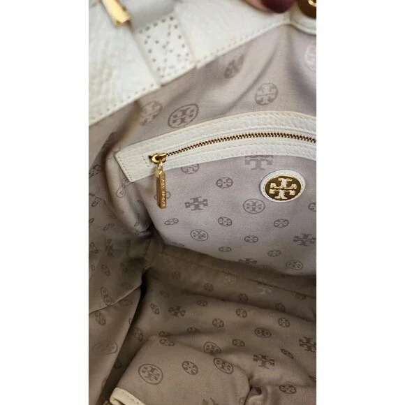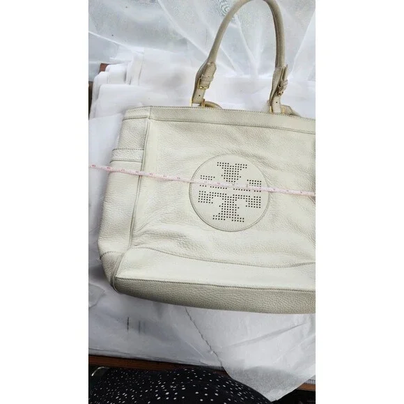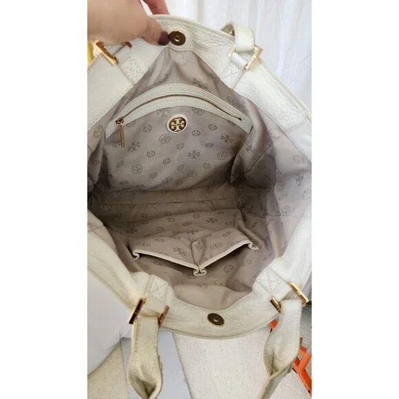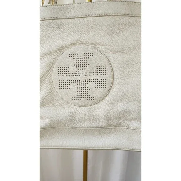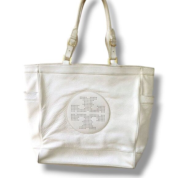 Tory BurchStyle: Kipp toteSolid off white colorExtra Large Tote Retail $698Overnight, Carryon, Travel Bag, work, laptop bagPebbled LeatherPerforated logo frontExcellent preowned condition with only minimal signs of normal wear, minimal scuffs and marksDesigner, high end, luxury, fashion, stylist, influancer, eye candyPreppy, workwear, elegant, business, office,NO RETURNS OR LINGERIE, UNDERWEAR, SWIMWEAR OR LUXURY. PLEASE SEE MEASUREMENTS AND ASK QUESTIONS BEFORE PURCHASING. RETURNS WILL NOT BE ACCEPTED.