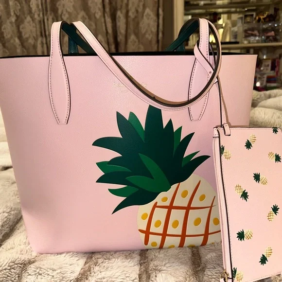 Kate Spade Colada Pineapple Graphic Large Tote Bag Pink Multi