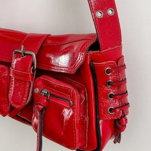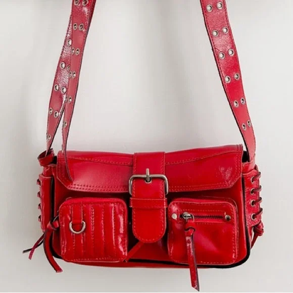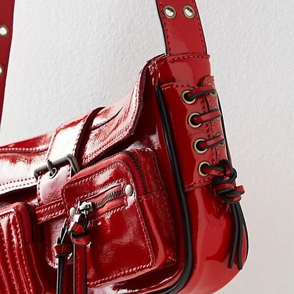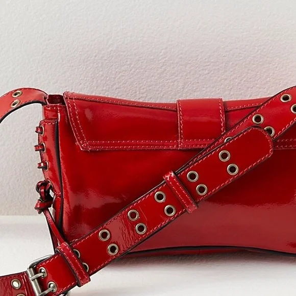 Free People High Speed Crossbody Moto Red shine Bag - LEATHER CLUTCH BAG