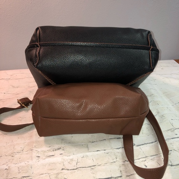 BCBG Reversible Tote Handbag Set Black Brown TWO