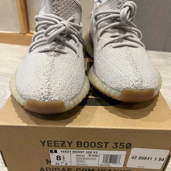 Chic Yeezy Boost 350 V2 Sesame. with a light gray knit and cream sole. Ideal for everyday style.Worn 1x indoorsPerfect condition Comes with original box