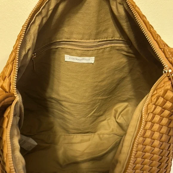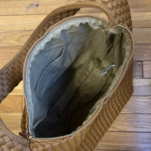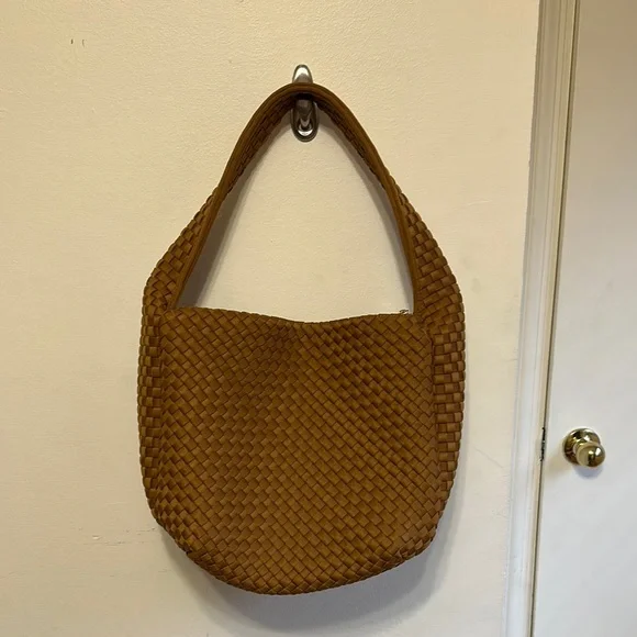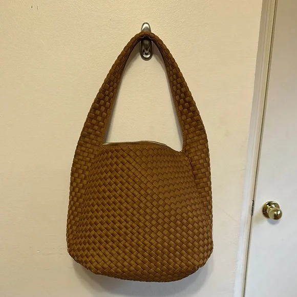 Anthropologie Neoprene Satchel Brown Woven Shoulder Bag. Perfect tote. In great condition. Light tan color.