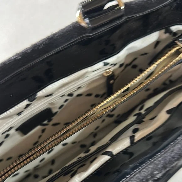 The Kate Spade Black Satchel is a chic and versatile accessory, featuring a structured silhouette adorned with striking copper studs for a touch of sophistication. Crafted from...