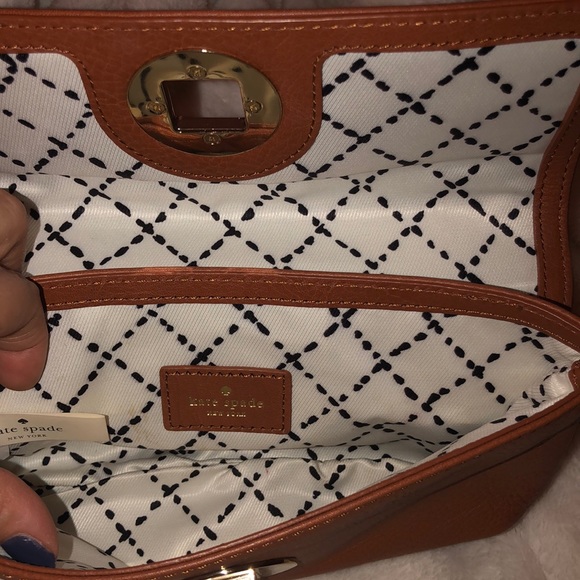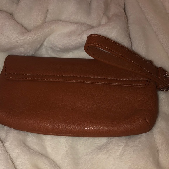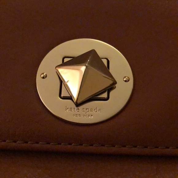 Kate Spade New YorkChrystie Street Evan Leather Wristlet Clutch Saddle Brown5 inch leather wrist strap, 14 K light gold plated hardware.Small barely noticeable scratch on plated...