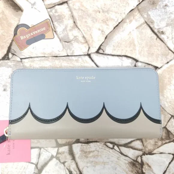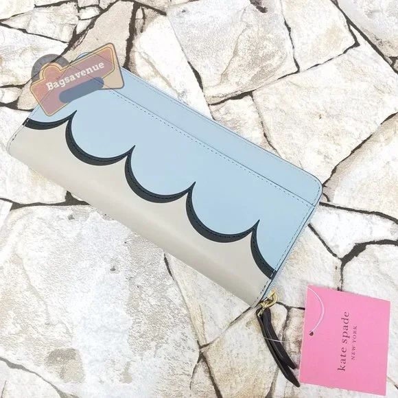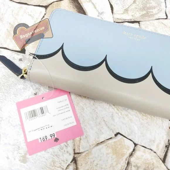 #bagsavenue horizontal blue intarsia scallop slim continental wallet Kate Spade