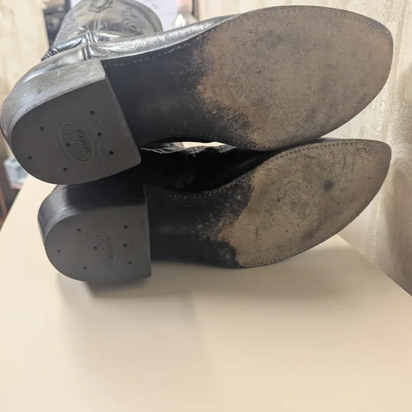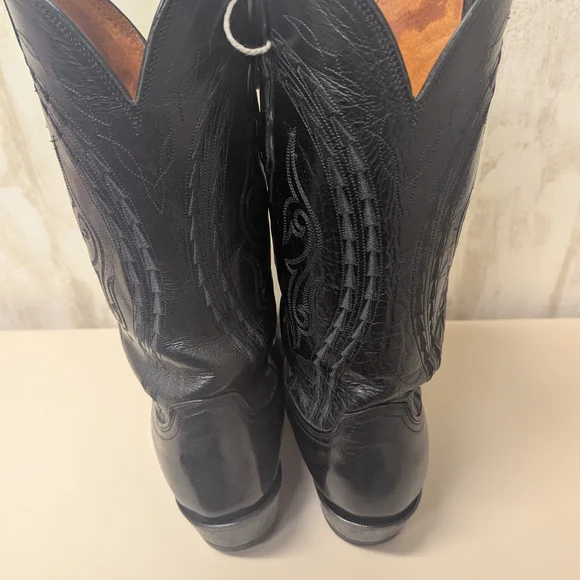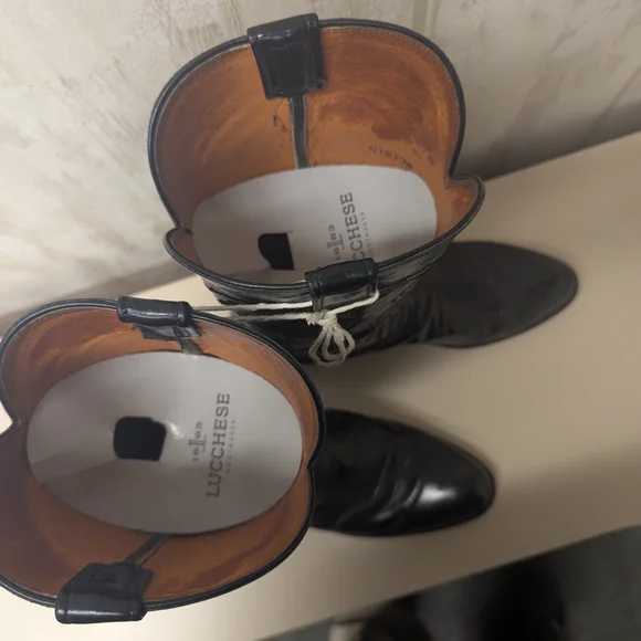 Step out in style with these sleek black cowboy boots. Lucchese brand size 10.5